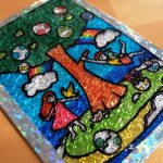 http://www.amy.tokyo/craft-3d-artステンドガラス風の立体アート作品を作ってみました。当てる光と見る角度によって様々な表情を見せるアート作品です。複数の透明の下敷き(プラバン)に直接マジックとポスカで絵を描き、厚みをもたせて配置することで作品に立体感を生み出してみました。透明感があって多重構造な感じが、ちょっとレジン風な作品でもあります。