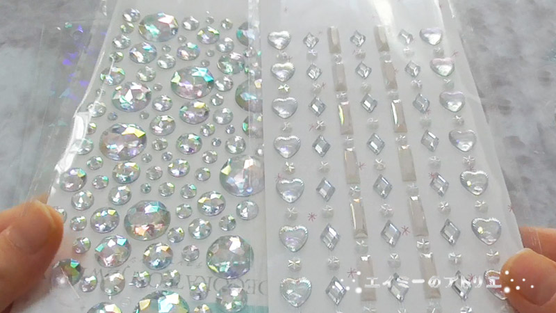 ハート型のデコレーションシールを使って花のオーナメントを作ってみました。透明素材なので、ラインストーンよりも「うるうるきらきら」と輝きます。