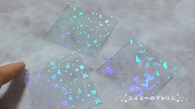 下敷き(透明)にクリアホログラムシールシートを貼ります。