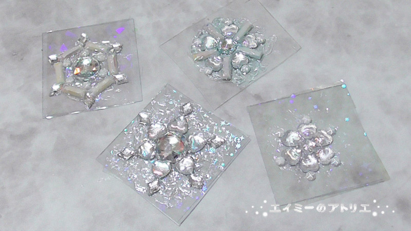 ジュエルオーナメントの作り方をご紹介します。Seriaなどで販売しているラ宝石のようにキラキラ輝くラインストーンシールを使います。まず最初に、雪の結晶のオーナメントを作ってみます。