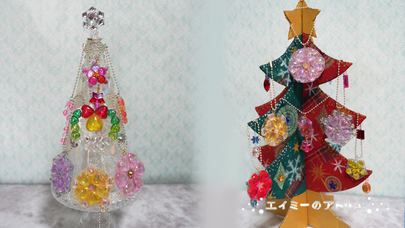 ダイヤモンドのようにキラキラ光を放ち輝くクリスマスツリーです。ツリーには宝石のオーナメントを吊り下げて飾ることができます。雪の結晶、花、リースなどいろんなオーナメントの作り方をご紹介していますので、自分だけの美しいツリーを作ってみてください!