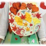 二重の袋を折り曲げてリボンを通し、両面テープで襟を貼り付けます