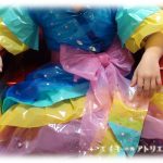 紫色1枚、水色1枚のビニール袋で作成します。女の子の魔法使いのドレスのトップスと同じように作ります。袖の羽飾りをなくした状態にします。裾はお好みで短めにしてもよいかもしれません。