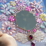 ぷっくりとした状態で固まった黒い輪郭の中を、塗っていきます。混色する際は別のアクリル板などに絵の具を出して混ぜた色を塗るのでもよいのですが、ガラス絵の具はすぐに乾いてしまうので、作品上で混色しました。異なる色の絵の具を爪楊枝で均一に混ぜたり、模様をつけたりといろいろなことをしてみました。