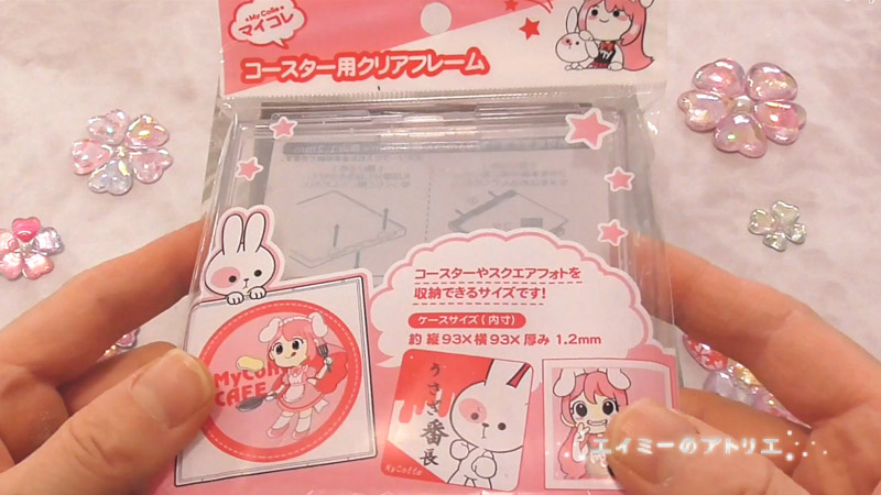 正方形のコースター用クリアフレームを、シールを貼る台にします。2つ用意します。(お店にない場合は注文して下さい。)