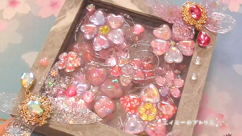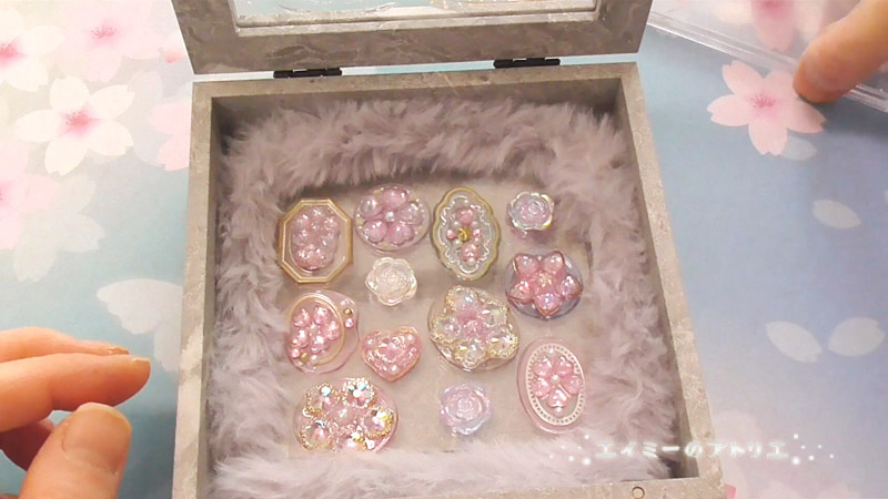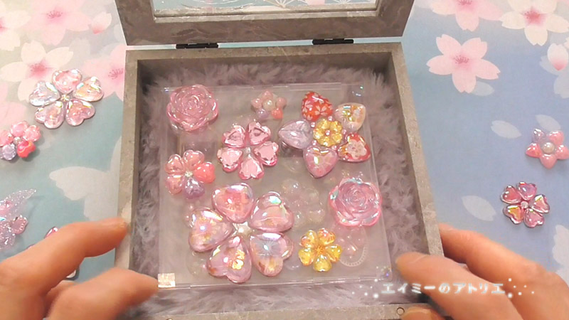 前々回&前回に作成した「桜のドロップシール」や「春のドロップチャーム」を収納して飾れる宝石箱を作成します。